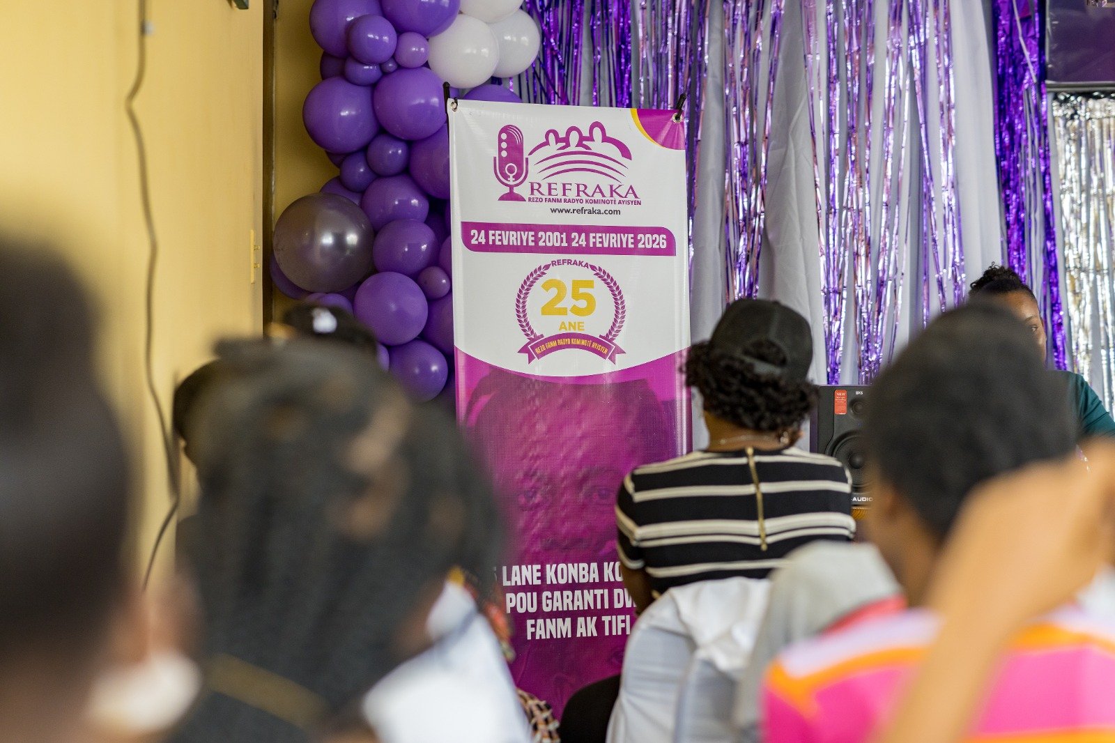 Nou rasanble fanm kominikatris yo pou ranfòse vwa fanm yo nan radyo kominotè yo atravè peyi a. Bouton: